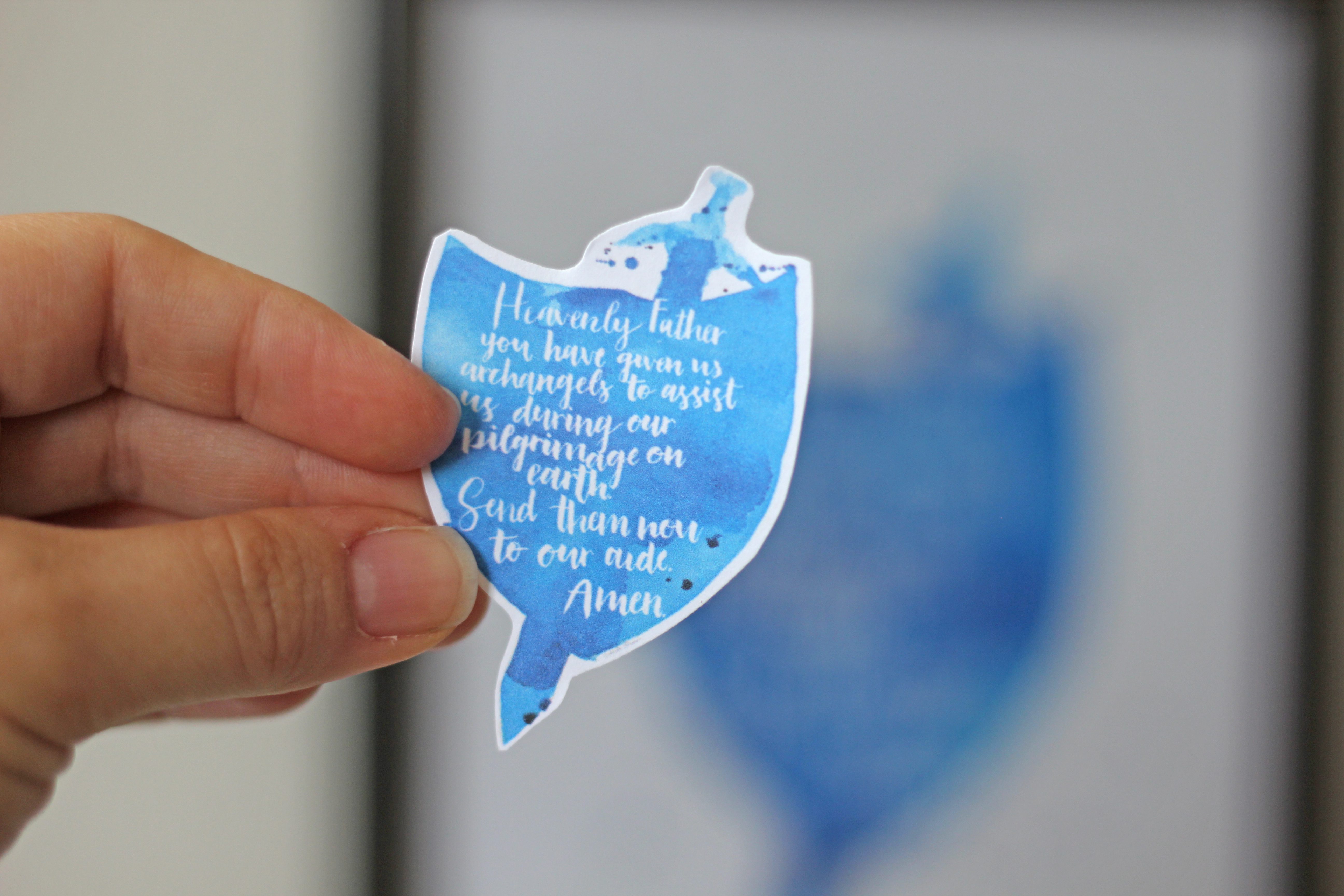 Now to the fun! I’ve whipped up a pretty download for you to print to help celebrate the feast day. I’ve also prepared some smaller versions of the same prayer to use as stickers, cupcake decor, or however you’d like to use them.