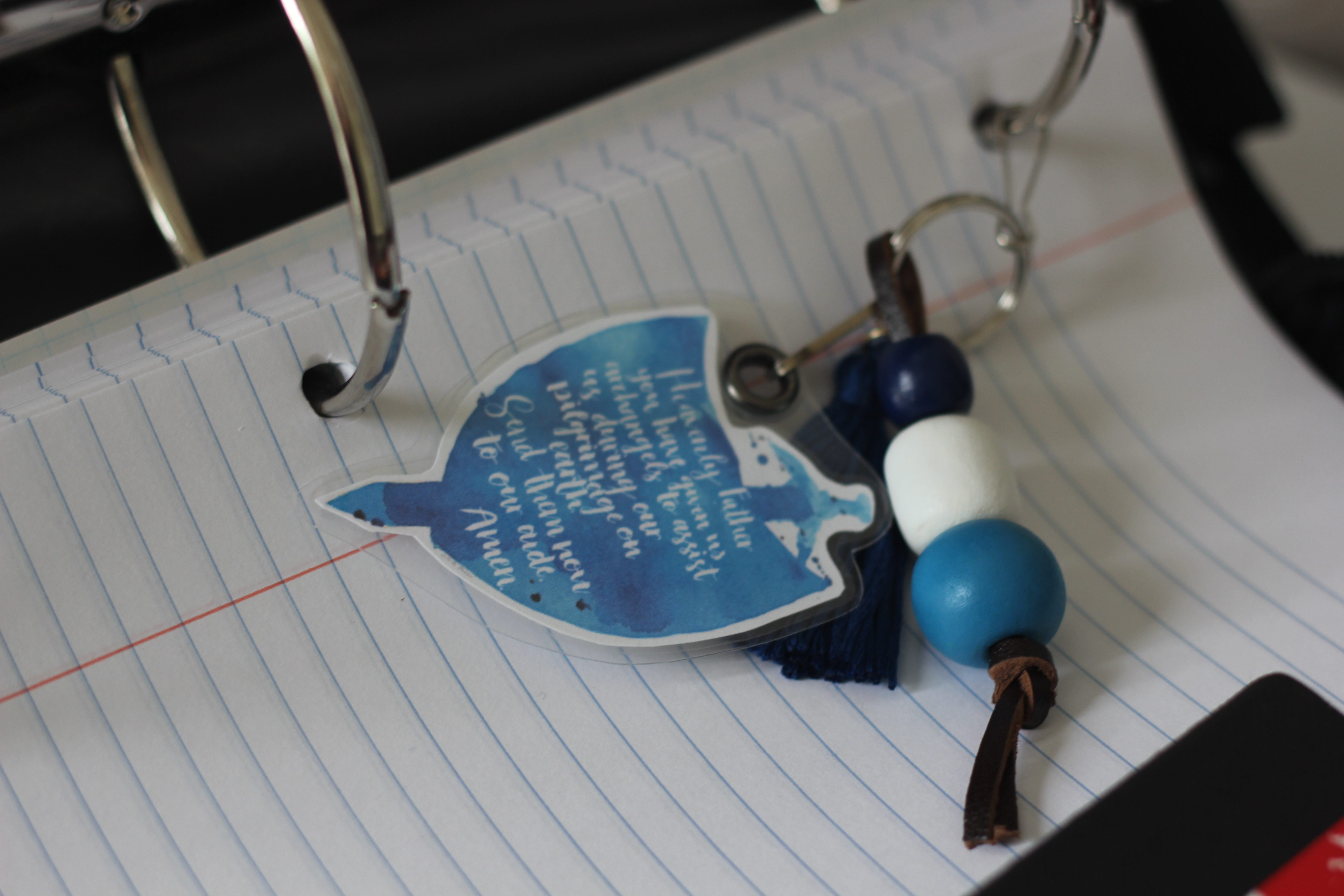I stuck this one on my son’s binder. (Inconspicuously sending the angels with him to school!) You could also put it on a backpack, purse zipper, hang it off your keychain or your rearview mirror. Make some and give them away to friends, make some and give them away to strangers. Make party favors! We can always use the protection and companionship of the angels.