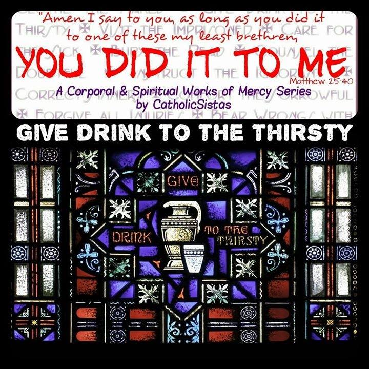 Give drink to the thirsty. How can this merciful work be practiced today? Here, water is so free and accessible that we play in it, totally take it for granted and sadly, even waste it. It is pumped directly into our homes into two or more receptacles. There is neither a shortage of water nor of corporate competitors marketing different brands of water to us. We have sophisticated filtration systems and storage facilities and more bodies of water than we can count. We are fortunate that we do not have to repair and refit community wells; we do not have to erect dams and filtration systems for filthy rivers; we do not have to live with warring tribes that deny their enemies access to water. We do not have to send our women and children with buckets to fill. Recalling a poignant scene from Ben Hur, we will never have the opportunity to give drinks to political slaves being marched across the desert to the ocean where they will be chained to a ship’s galley.