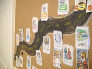 - Create a path, road, or something to that effect on a large paper to post in the room. Another option is to print these small and to make a file folder out of them and have each child make their own to take home {more for CCD or school settings}