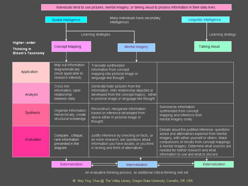 Next week I will make the connection between the learning style/MI of your student with learning domains, or higher order thinking known as Blooms Taxonomy.