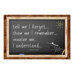 Tell me, I forget…show me, I remember…involve me, I understand. ~ Chinese proverb