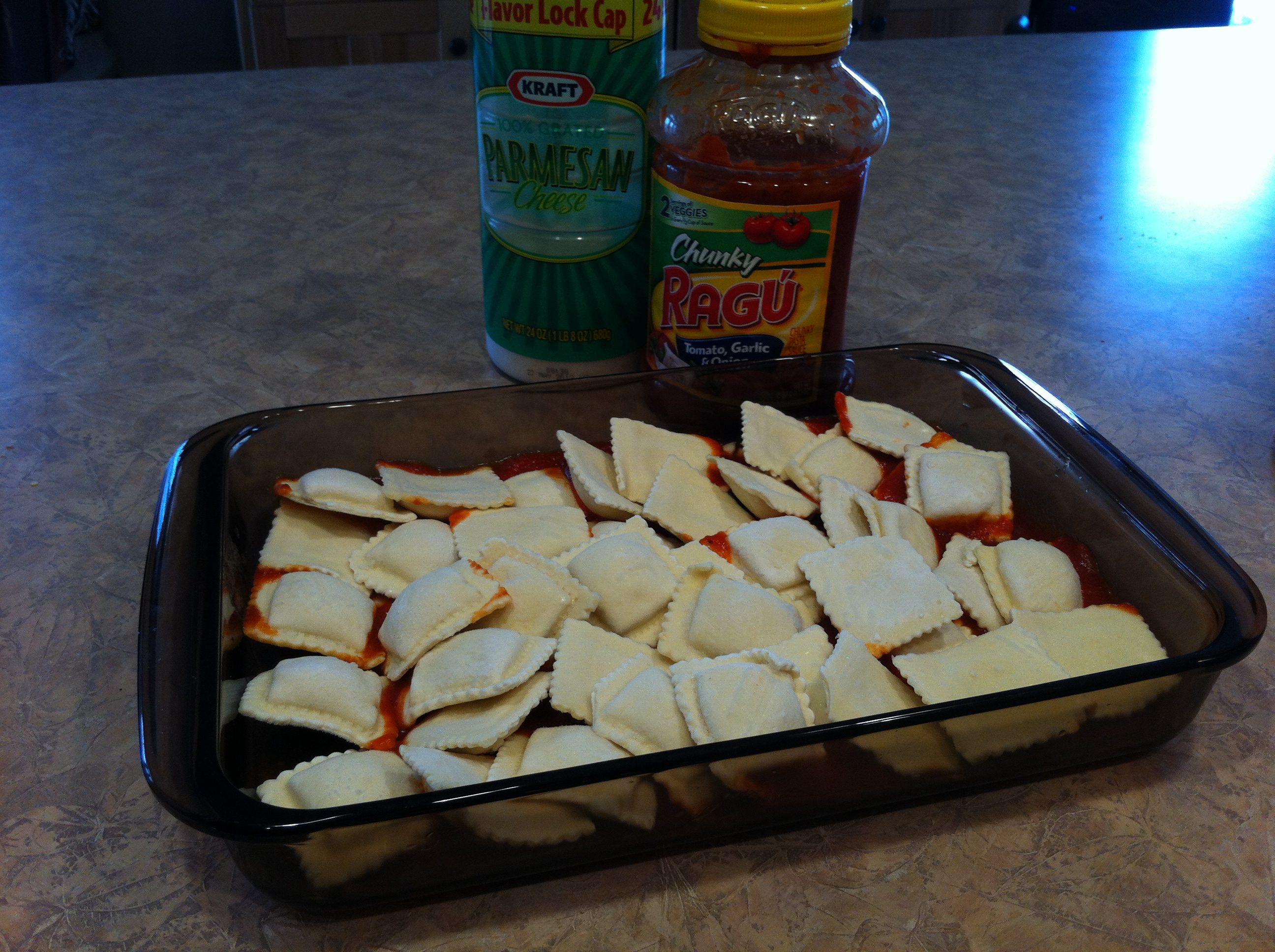 I need a quick solution and have three ingredients:- Frozen ravioli – generic from Walmart