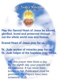 My desires can be so egocentric; I may tend to think my wants and needs need to be satisfied.  Obviously, this is not so.  I trust that no matter what happens with my intentions, I have given it my all; I have prayed with sincerity and with emotion and asked other holy people to pray with me.  If I have done all this, I have never felt let down after praying for nine days.  I know that what occurs will always be God’s will and he has heard me and He will take care of everything in His way.  This has always been a tough lesson to learn.  The more dedicated I am in praying a novena, the more at peace I am because of this trust.