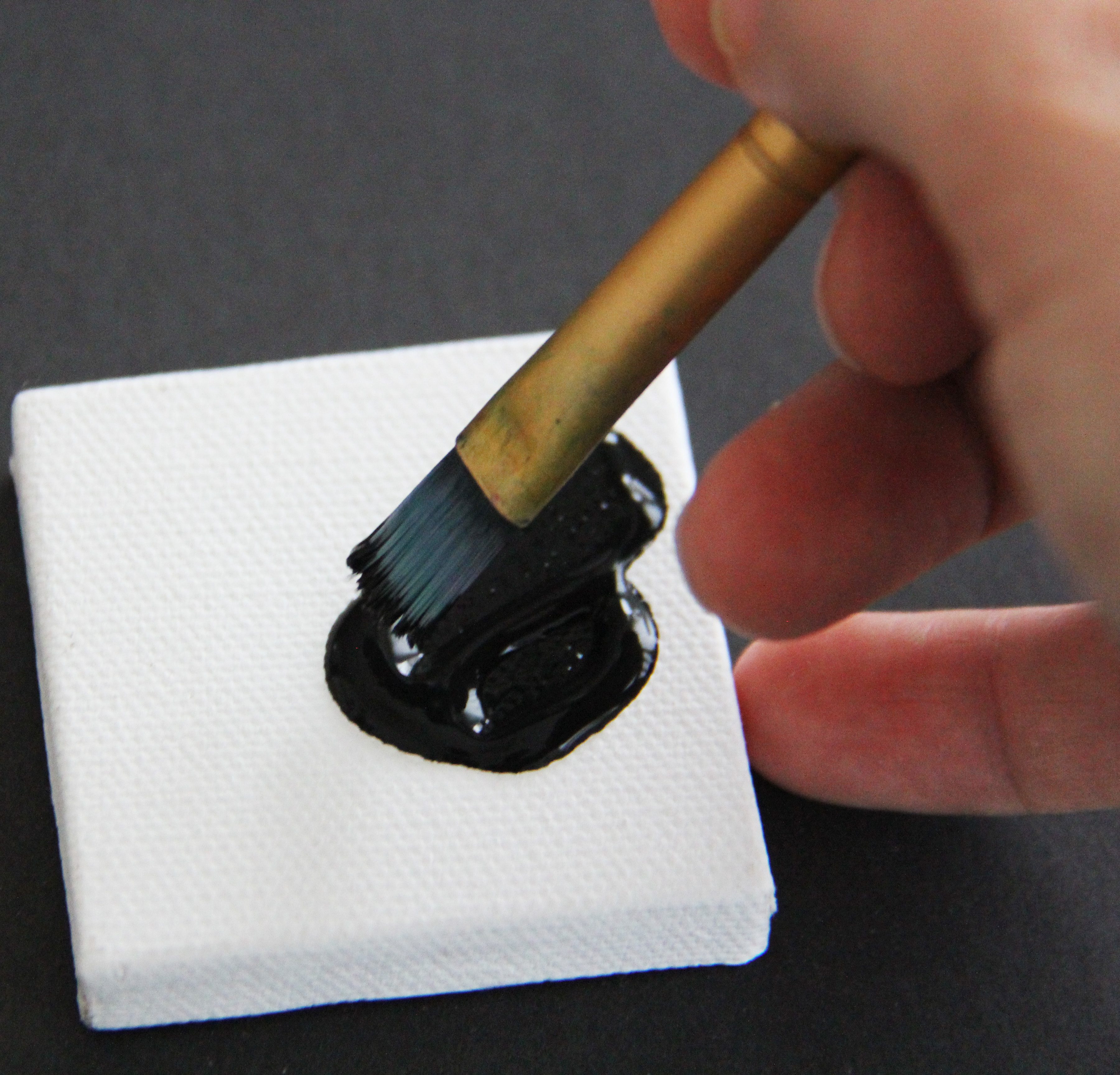 Start by covering your canvas in a layer of black for the background. Make sure that you cover all the white, and you can use a blow dryer to dry between layers. I highly recommend this so that you can do the painting in a very short time frame!