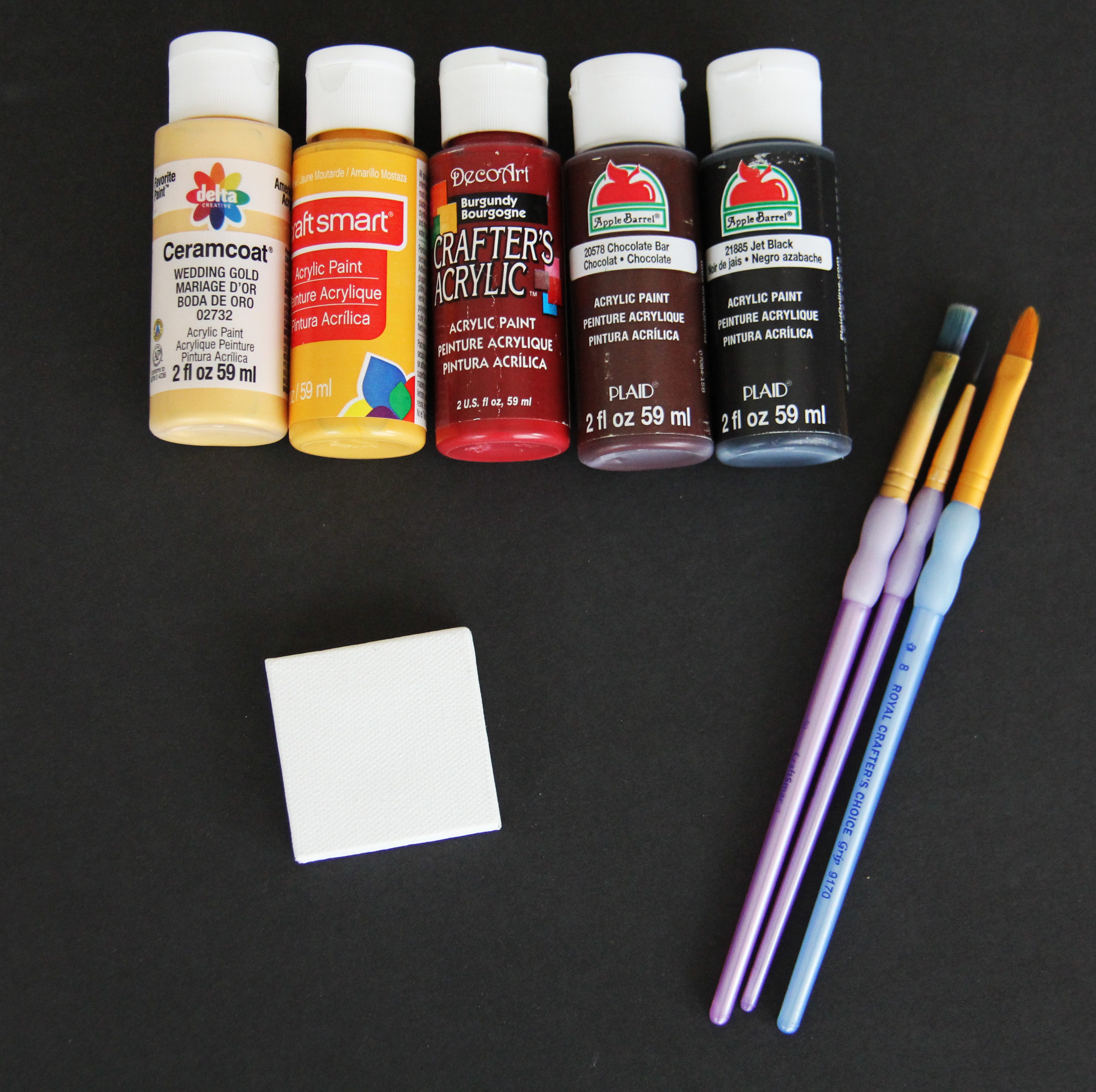 Brushes– One wide brush for the background, a round tipped medium size, and a thin tip for the details.