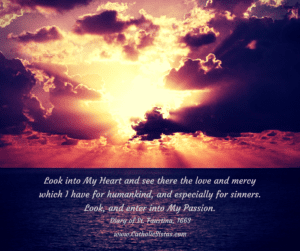 And, ultimately, focusing on, rather than worrying about, the eternal reward also gives us reprieve. It gives us a chance to heed Jesus’ words to St. Faustina, “Look into My Heart and see there the love and mercy which I have for humankind, and especially for sinners. Look, and enter into my Passion.”