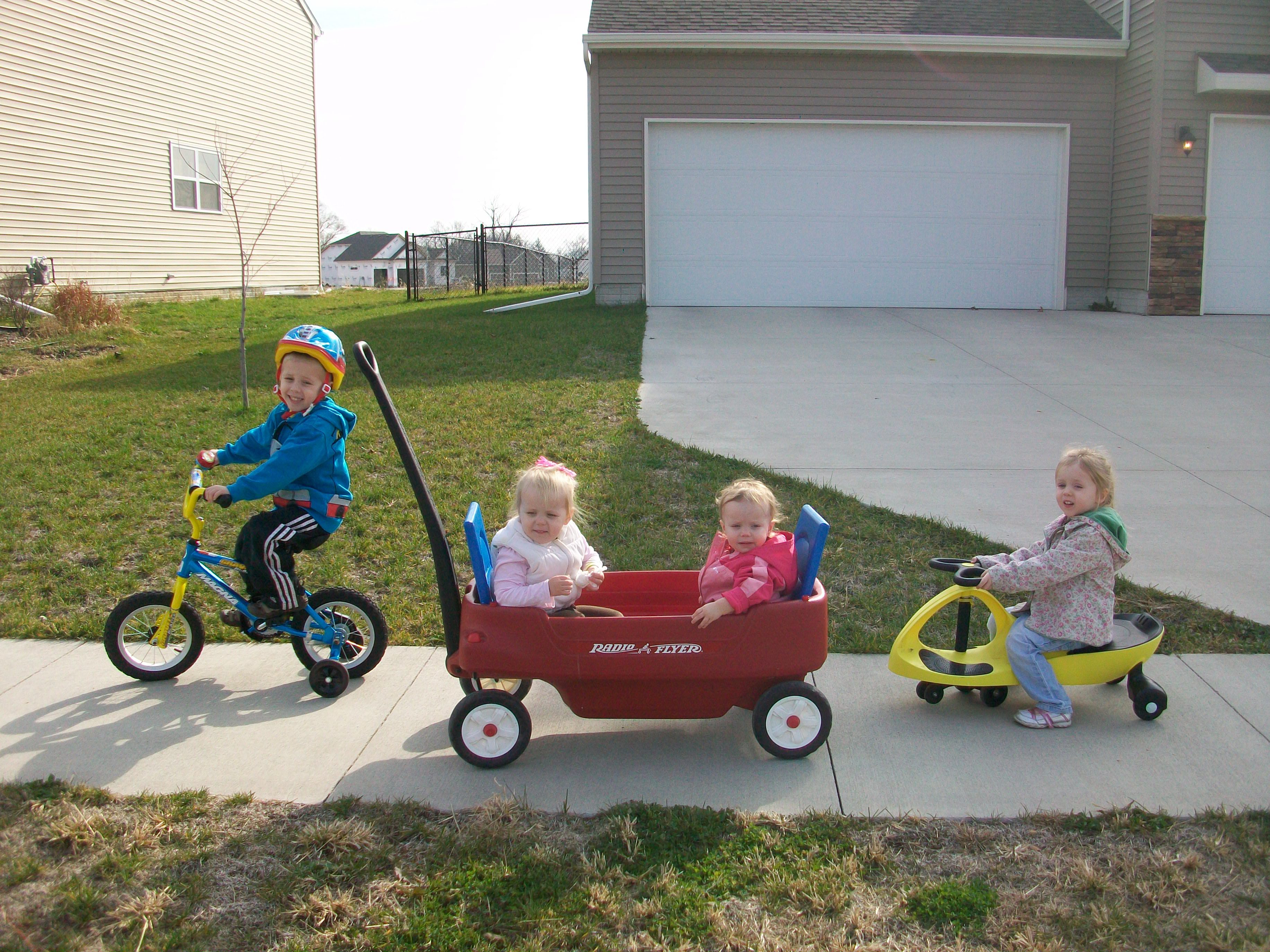 The days are getting cooler here, so when we were blessed with a temperate day recently, I decided to take the kiddos for a walk after lunch. While this sounds like an easy task, I will tell you it is in fact one of my more daunting mommy duties. Get everybody in socks, shoes, and coats. Put the baby in the baby carrier, buckle two toddlers in the wagon, get one preschooler in a bike helmet and safely on a bike, while the other rides the push car. Make sure everyone gets safely down our severely sloped driveway and then keep them alive and out of the street until we get home. Let’s just say we don’t go on walks without Daddy often.