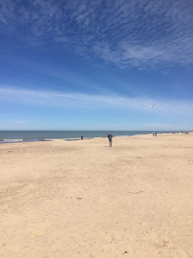 Saturday dawned bright, chilly, and breezy. We decided to make a go of it, packed a cooler for lunch, and made our way to the beach. The balmy 45 degrees nearly deterred us when we arrived, but the horizon was bright. After a stop