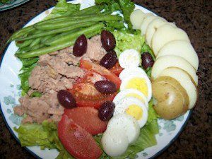 This can be a very filling salad. Often we leave off either the green beans or the potatoes rather than having both. We have also replaced the green beans with asparagus when it was difficult to find decent fresh green beans. Personally, I don’t care for olives, so I skip those on my salad. I’ve also seen Salad Niçoise done with grilled tuna steaks, if you want to get fancy. For the picky eaters in your family, get creative with vegetables they will like. If you’re creative, you can experiment and I’m sure you’ll find something that everyone in the family can enjoy.